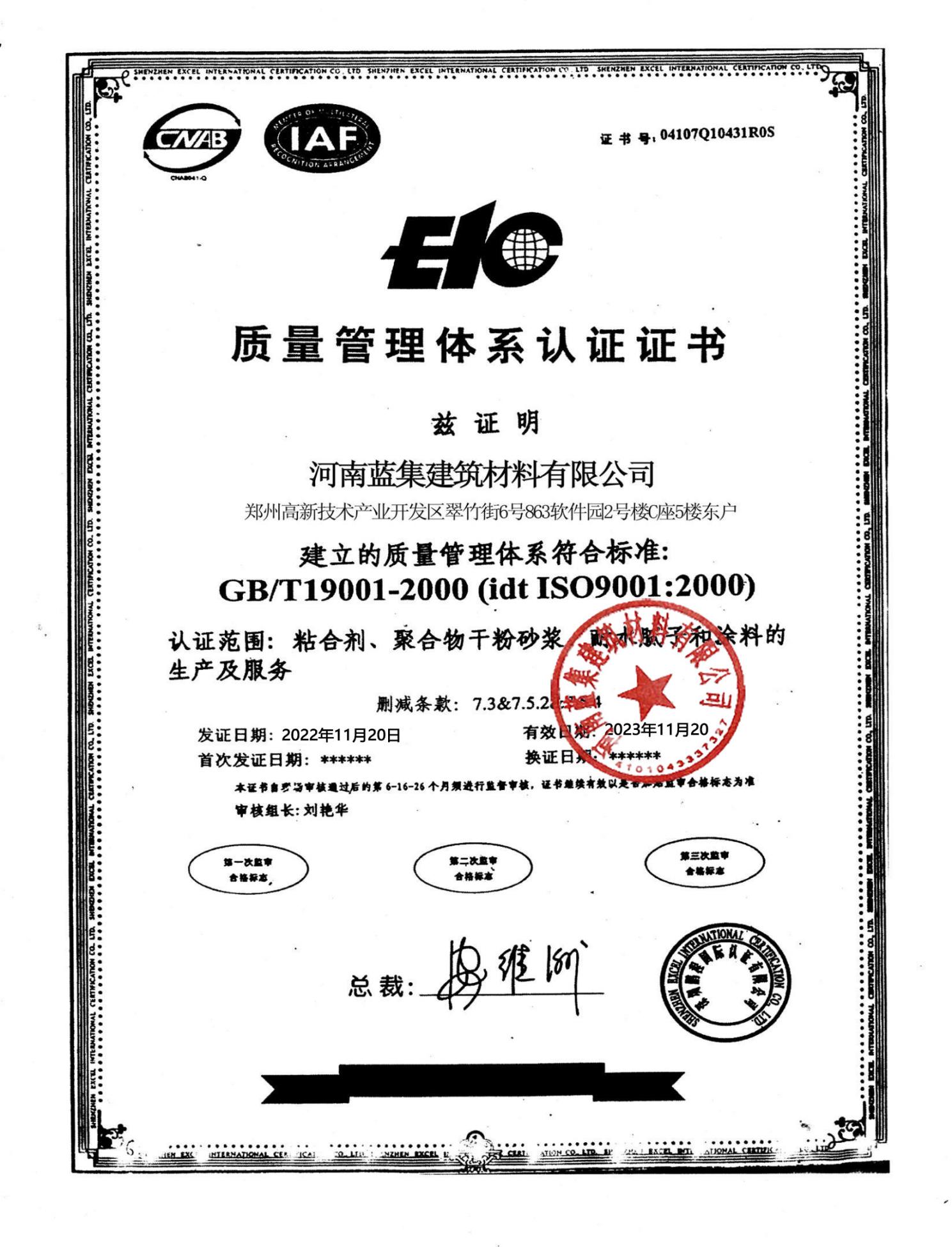 质量管理体系认证证书